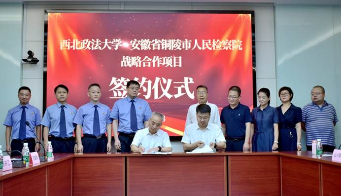在参会人员的共同见证之下,西北政法大学张荣刚副校长与铜陵市人民检察院杨开江检察长共同签署了战略合作协议。