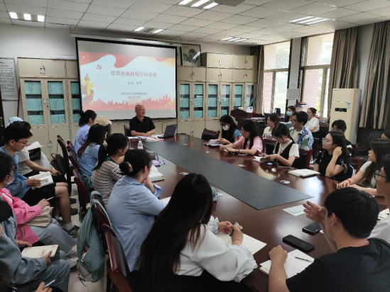 杨军首先从申请入党、入党积极分子的确定和培养教育、发展对象的确定和考察、预备党员的接收、预备党员的教育考察和转正等五个阶段,为同学们详细讲解了党员发展的程序和流程,要求同学们要严格遵守党员发展的程序和流程,时刻进行自我教育和提高。随后杨军对《中国共产党纪律处分条例》部分修订内容进行了讲解,引导同学们对标新修订《条例》要求,提升政治觉悟,树牢纪律观念、严守纪律规矩。