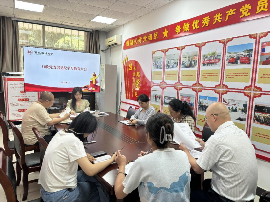 行政党支部在学院党员活动室开展党纪学习教育专题学习,支部书记李彧嘉讲授专题党课。