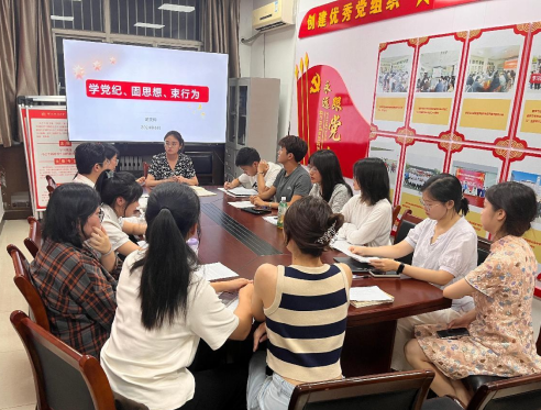 武雯梅以习近平总书记关于党的纪律建设的重要论述为切入点,从“学党纪:正确理解《条例》修订的背景意义;固思想:深刻把握《条例》的主旨要义;束行为:全面贯彻《条例》的实践要求”三个方面,通过用案释学、以案促学的方式,结合实际案例,进行了全面生动深入的讲解。她要求,支部全体党员要把学习贯彻《中国共产党纪律处分条例》作为一项重要的政治任务,做到逐章逐条学、联系实际学,真正把纪律规矩转化为政治自觉、思想自觉、行动自觉,打牢遵规守纪的思想基础。党课结束后,支部成员通过轮流发言、思考讨论的形式,将《条例》内容具象化、案例化,进一步巩固内化党课学习成果,确保党纪学习教育细致入微、行之有效。