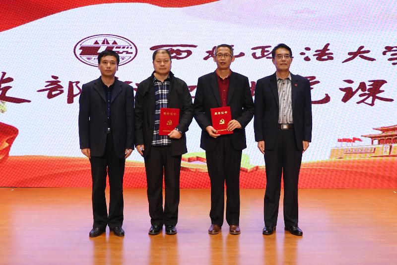 2017年12月1日,由校党委组织部主办,反恐怖主义法学院党委承办的西北政法大学党支部书记讲党课竞赛决赛于长安校区图书馆二楼报告厅隆重举行。校党委副书记赵健,纪委书记肖道远,总会计师刘鹏伟,副校长李玉朝、王麟应邀出席。8个二级党组织的10位支部书记分别登台,面对评委和现场500余名师生党员讲党课。我院逻辑学教研室党支部书记赵全金老师以扎实的理论功底,透彻的说理分析和稳健而富有感染力的现场表现力压群芳,以总分第二的成绩摘得本次竞赛二等奖。
