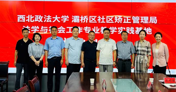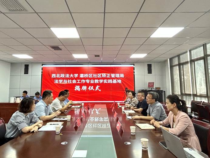 为更好地服务地方法治建设,培养高素质法治人才战略储备,构建实务部门与学校联合培养新型法治人才机制,2023年7月25日下午,西瓜直播 与西安市灞桥区司法局在西安市灞桥区社区矫正管理局会议室举行战略合作签约暨“法学与社会工作专业教学实践基地”揭牌仪式。西安市司法局副局长张兴平、西安市司法局社区矫正管理局局长高辉、西安市司法局社区矫正管理局四级调研员杨辉、西安市灞桥区司法局局长马俊良、西安市灞桥区司法局副局长赵莹以及学院党委书记寇汉军、院长山小琪、党委副书记 副院长上官亚敏、李岚林副教授和学院学生代表等出席了活动。签约揭牌仪式由灞桥区司法局副局长赵莹主持。