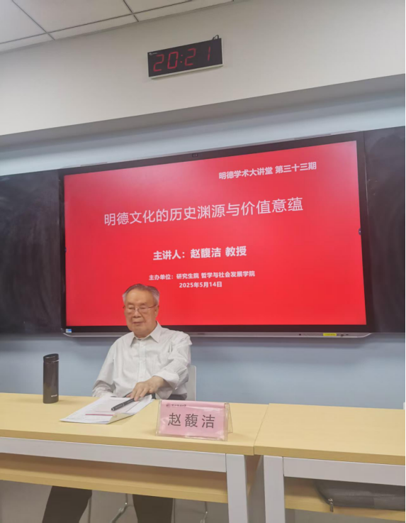 和研究生院联合主办的“明德学术大讲堂第三十三期”在雁塔校区三号教学楼3605教室顺利举行。西北政法大学资深教授赵馥洁作题为《明德文化的历史渊源与价值意蕴》的学术报告,报告由校党委委员、研工部部长宋白主持。西瓜直播