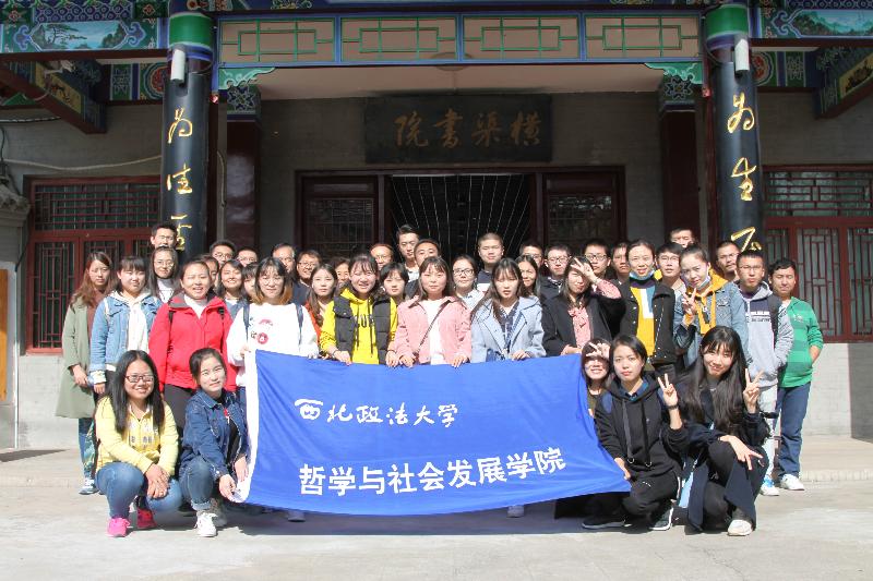 作为国家水平大学建设项目和陕西省专业综合改革子项目的“关中文化书院”,是西北政法大学哲学专业“两型人才培养”的重要内容。其中“中国古代书院文化”课程,是其教学承载的平台之一。任课老师张周志教授,在其课程体系的下篇:“中国古代关中地区书院研究”教学中,除了理论教学外,每届同学都有不同形式的现场教学及实习实训活动安排。本年度的教学中,张老师特别安排了本科生和部分研究生的“东横渠书院、张子祠、元圣周公文化”讲座与现场教学活动。经过认真的前期协调和充分准备,2017年11月2日,任课教师张周志教授带领课程班级的本科生和部分自愿参加的研究生一行四十余人,赴陕西郿县横渠书院、张载祠、周公庙进行了现场教学和实地学习,邀请了横渠书院副院长杨登科教授、孙女士等详细讲授了张载与关学、张载与理学、张载思想的哲学、文化、历史及现实意义等,现场体验了张载东横渠书院的教学及学术研究的地缘特质,参观欣赏了历代思想家、学者、政要,甚至帝王对于张子思想、学说、人品的高度评价的碑帖,师生现场诵读《正蒙》和《西铭》章句,加深了对一代大儒张载及其所开创的关学思想,以及元圣周公旦制作礼乐、感知天命思想的进一步了解。晚上十点多返回学校,师生们依然心情激动,深感学习收效甚多。