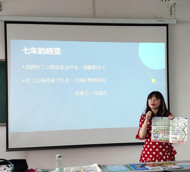2019年9月4日14时30分,西瓜直播 在长安校区格物楼401教室举办了以“年华未竟——我和社会工作的七年时光”为题的讲座。本次讲座由西安交通大学社会工作硕士、儿童乐益会项目兼技术官员刘琦慧担任主讲,我院靳宇老师担任主持人。我院18级社会工作专业全体同学聆听了讲座。