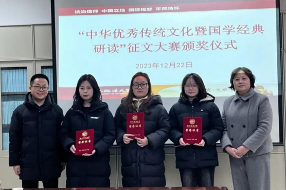 寇汉军表示,本次大赛以继承和发扬中华优秀传统文化为核心,与爱国主义教育法中强调的爱国主义教育内容相契合,意在进一步培养广大青年的文化自觉与文化自信,引导广大青年感悟思想伟力,凝聚奋进动能,争做担当民族复兴大任的时代新人。他向同学们提出三点要求和建议:第一,应扎实学习课堂文化知识,主动选修与优秀传统文化教育相关的课程,加深对中华优秀文化的了解,学习并充分运用古圣先贤传留下来的文化思想理论,厘清并汲取其中的精髓思想和智慧,进一步提升文化修养和个人素质,增强民族文化认同感和自信心。第二,积极参与经典精读大赛、征文大赛、主题团课等校园文化活动,在丰富校园文化生活的同时增强爱国意识,感悟思想伟力,汲取奋进力量,进一步强化民族文化自豪感和爱国主义情思。第三,积极参加丰富多彩的校外实践活动,用脚步丈量祖国大地,用内心感悟时代脉搏,结合并充分运用所学专业知识,在理论联系实际中进一步增强专业素养与综合能力,进一步坚定扎根人民、奉献国家的理想信念,展现出西法大学子奋发有为的青春风采和精神面貌。
