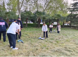 组织同学们进行校园公共区域打扫活动。