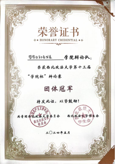 5月10日西北政法大学2024 学院杯辩论赛决赛在长安校区天平楼Aj12举行,我院辩论队以14:7战胜民商法学院辩论队,荣获冠军!