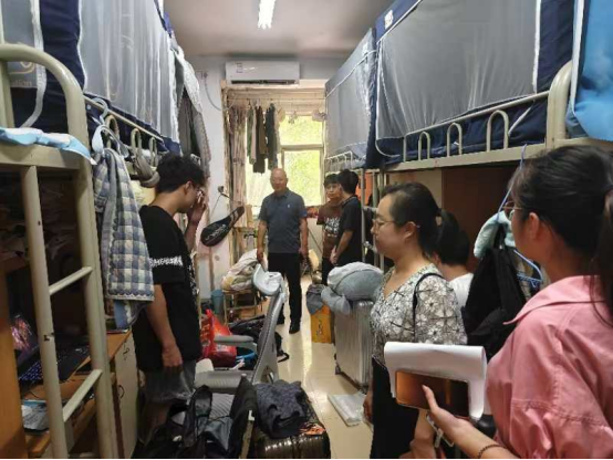 为贯彻落实学校新学期工作安排,了解学生返校情况,加强宿舍安全管理,进一步深入营造良好的生活环境和学习氛围,8月25日下午,学院党委副书记杨军,辅导员慕婧、武雯梅、李嘉昕一行深入学生宿舍进行走访。