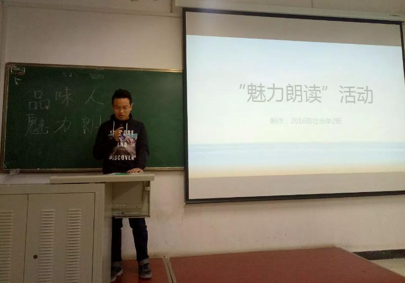为了推动习近平新时代中国特色社会主义思想深入同学们心中,引导同学们树立远大理想,提高文化素养,激发同学们的读书热情,活跃校园文化,营造良好读书氛围,推动大家爱上读书,享受读书,在书中陶冶性情,增长才干,感悟人生的真谛,西瓜直播 团委积极响应校团委号召,于2017年11月23日下午16时40分在格物楼306教室开展“品味人生,魅力朗读”活动。本次活动由2016级社会学2班团支部主办,2016级哲学1班以及社会工作3班团支部协办,本次活动由辅导员慕婧老师主持,2016级全体学生参加。