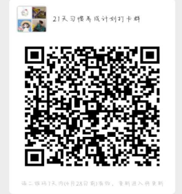 (2)微信扫描二维码加入“21习惯养成计划”的圈子进行每日进行打卡反馈(反馈截止时间为每日23:00)