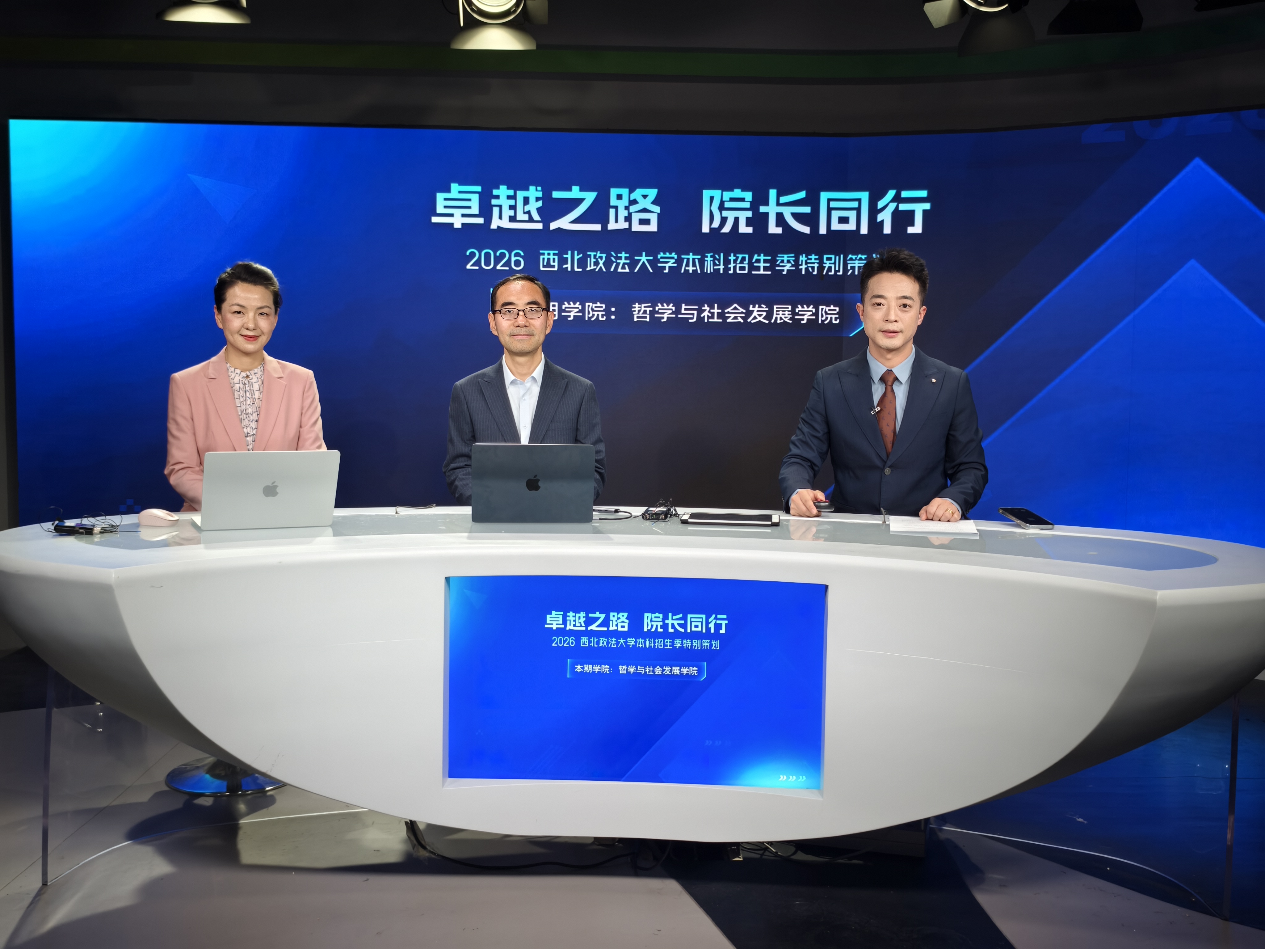 根据学校招生就业处的统一安排,西瓜直播 院长何小勇教授、副院长李岚林教授于4月22日下午走进陕西广播电视台,参与《卓越之路、院长同行——2026西北政法大学本科招生季特别策划》节目录制,向广大考生与家长全方位推介学院优势特色。