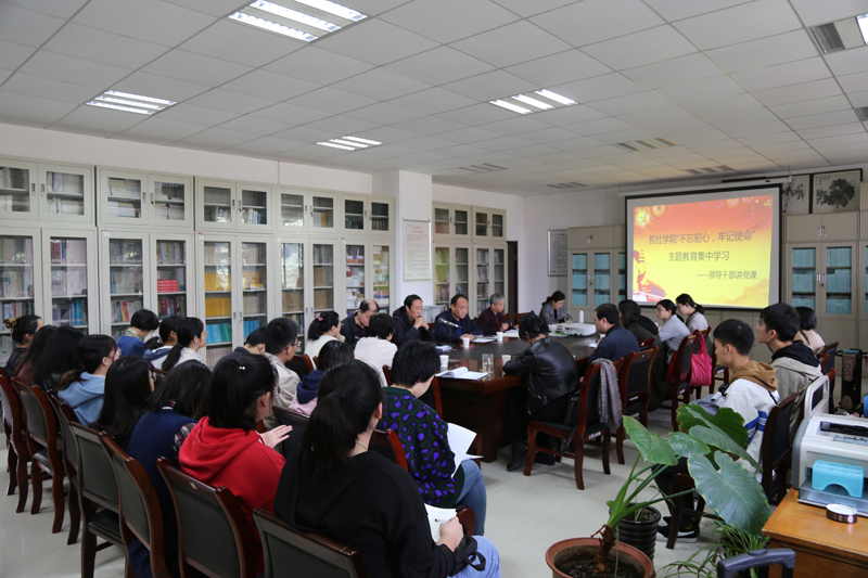 10月28日上午,西瓜直播 在格物楼会议室组织开展了院领导干部讲党课活动。校主题教育巡回指导一组组长刘育龙应邀出席。院领导班子成员、党支部书记、科级干部及师生党员代表共40余名参加了活动。